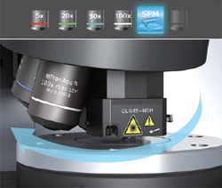 OLS4500采用了裝在電動物鏡轉(zhuǎn)換器上的物鏡型SPM測頭。同軸、共焦配置了物鏡和微懸臂前端,所以切換SPM觀察時不會丟失觀察目標(biāo)點。不僅如此,新開發(fā)的小型SPM測頭提高了剛性,所以與傳統(tǒng)產(chǎn)品相比,減少了影像瑕疵并提高了可追蹤性。