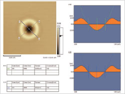 控制微懸臂與樣品之間作用的排斥力為恒定的同時, 使微懸臂進行靜態(tài)掃描, 在影像中呈現(xiàn)樣品的高度。還可以進行彎曲測量。