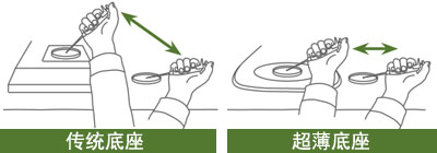 ? 超薄底座—更薄的LED照明底座與平板底座可有效減少手臂的抬高距離提供很好的人體工學舒適性。