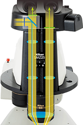 尼康變焦系統(tǒng)提供25:1的最大變倍比(0.63x—15.75x),高數值孔徑物鏡同時提供很好的分辨率。即使使用1X物鏡,SMZ25仍可拍下整個35mm培養(yǎng)皿同時獲得很好的顯微細節(jié)。
