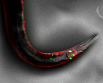 GFP、RFP 標記線蟲中的神經元(Image courtesy of Julie C. Canman, Ph.D., Columbia University)