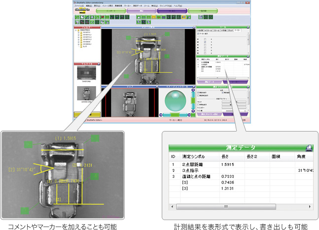 免費(fèi)提供的專用軟件ShuttlePix Editor通過該軟件,可以對拍照后的得到的圖片進(jìn)行簡單測量,對合成的EDF圖像進(jìn)行斷面圖分析。