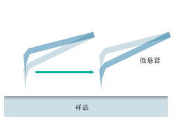 SPM傳感器光路圖 | OLS4500上采用了光杠桿法——通過高靈敏度檢測出最前端裝有探針的微懸臂的微小彎曲量(位移)來進(jìn)行觀測的方法。在懸臂的背面反射激光,并用壓電元件驅(qū)動Z軸,使激光照射到光電檢測器的指定位置,從而正確讀取Z方向的微小位移。 |